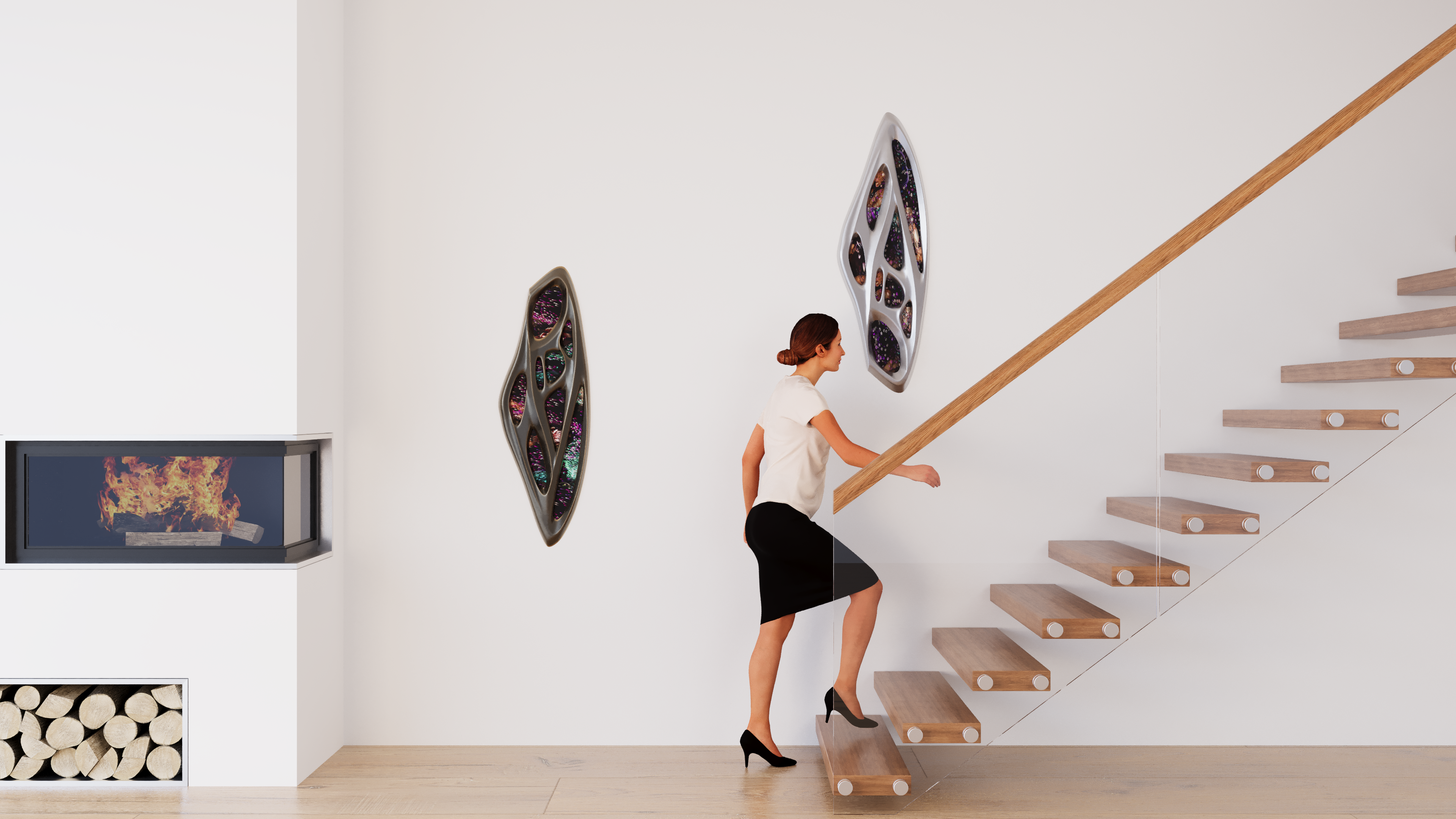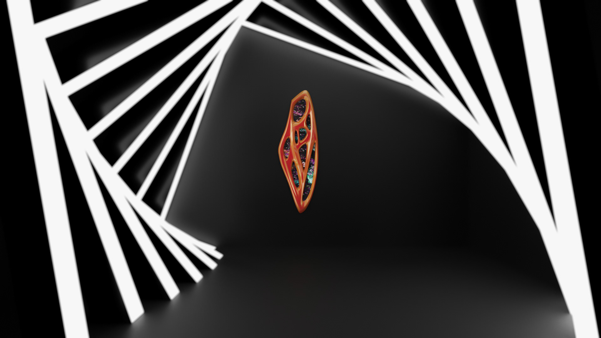 Frame is more than a sculptural form — the voids are designed to host digital screens. With non-repeating video sequences, it becomes a wall-mounted artwork that is constantly in motion.