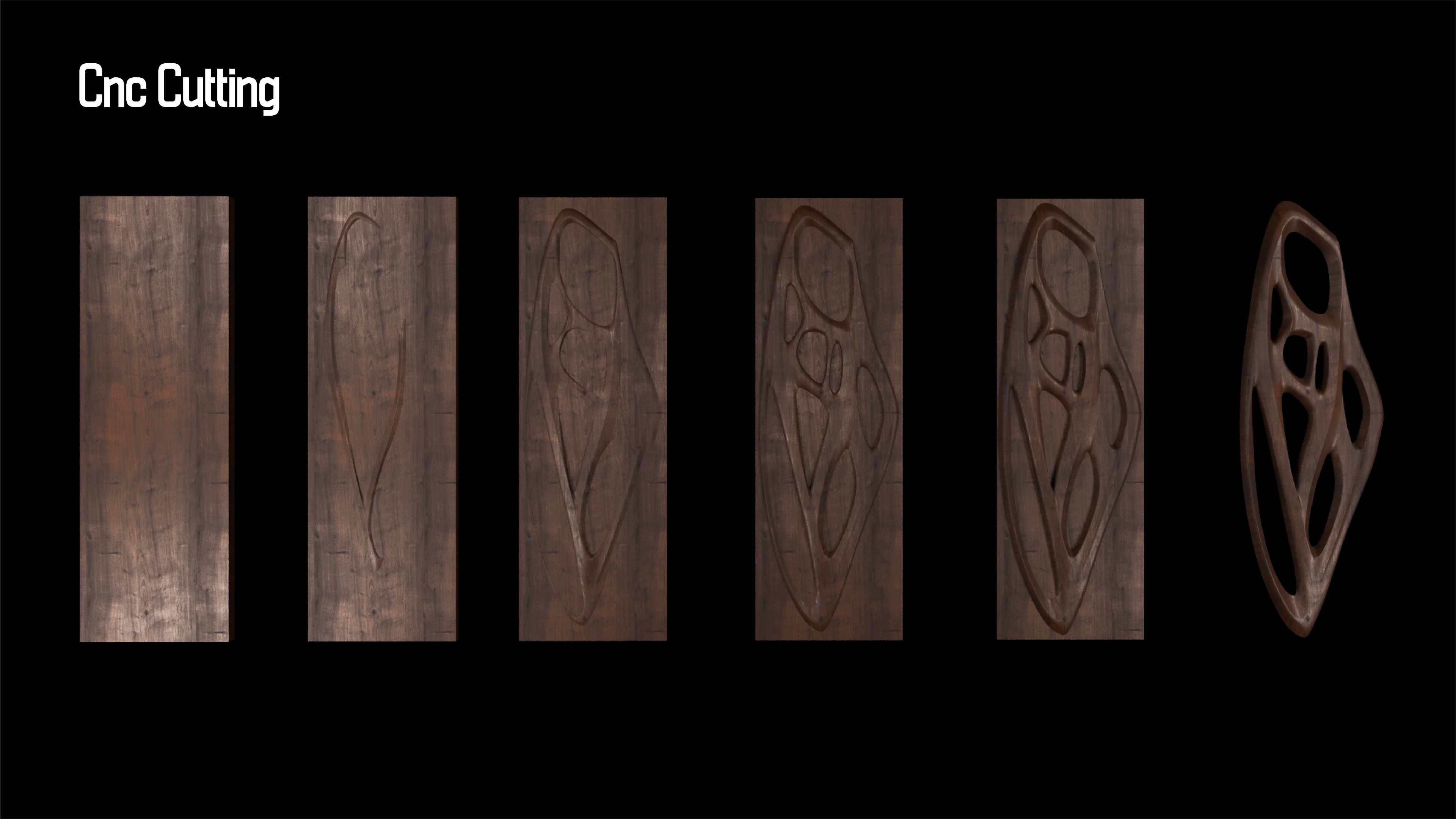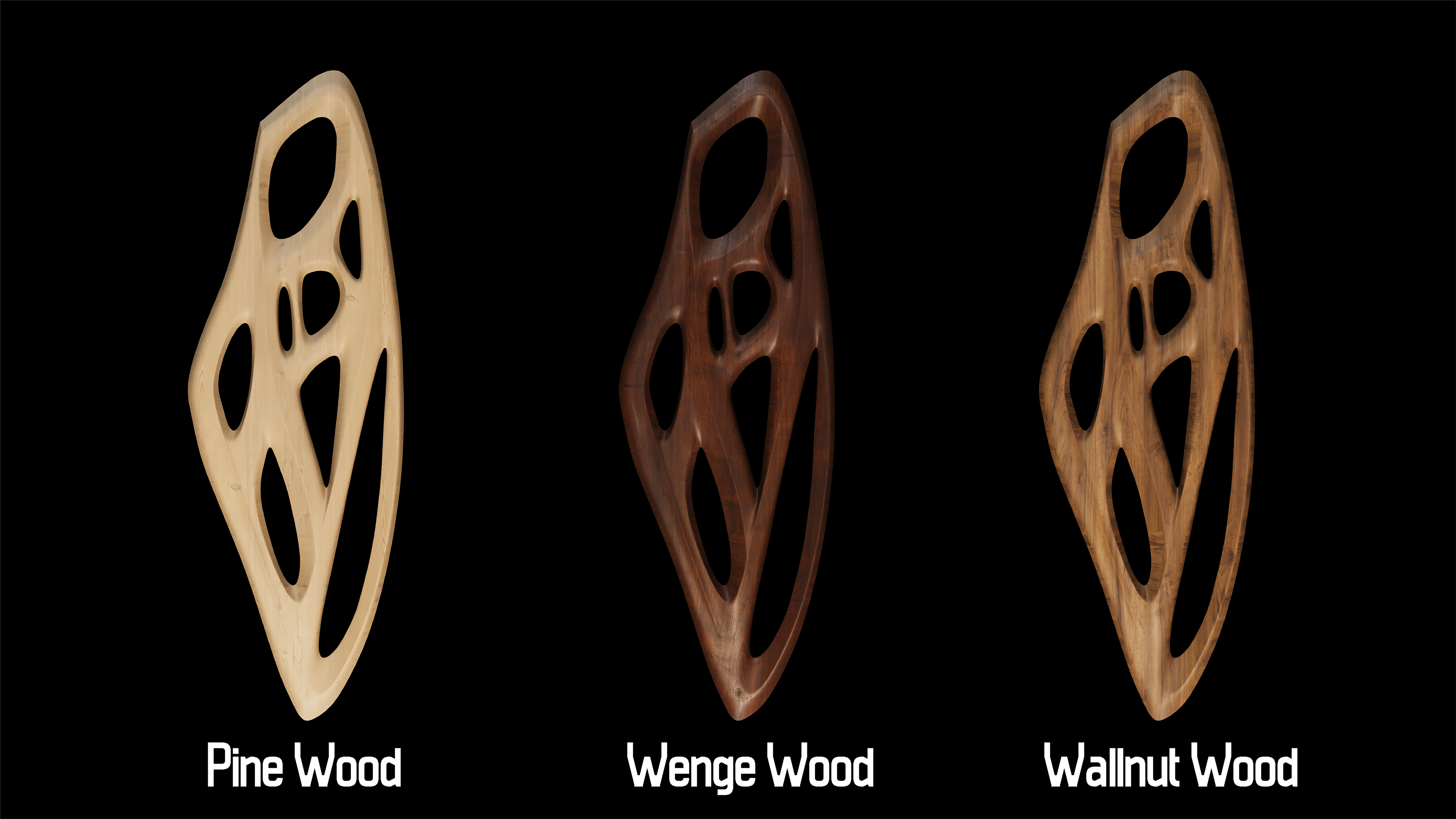 If produced in wood, this form could be realized through CNC milling, with toolpaths following the curves and voids precisely.