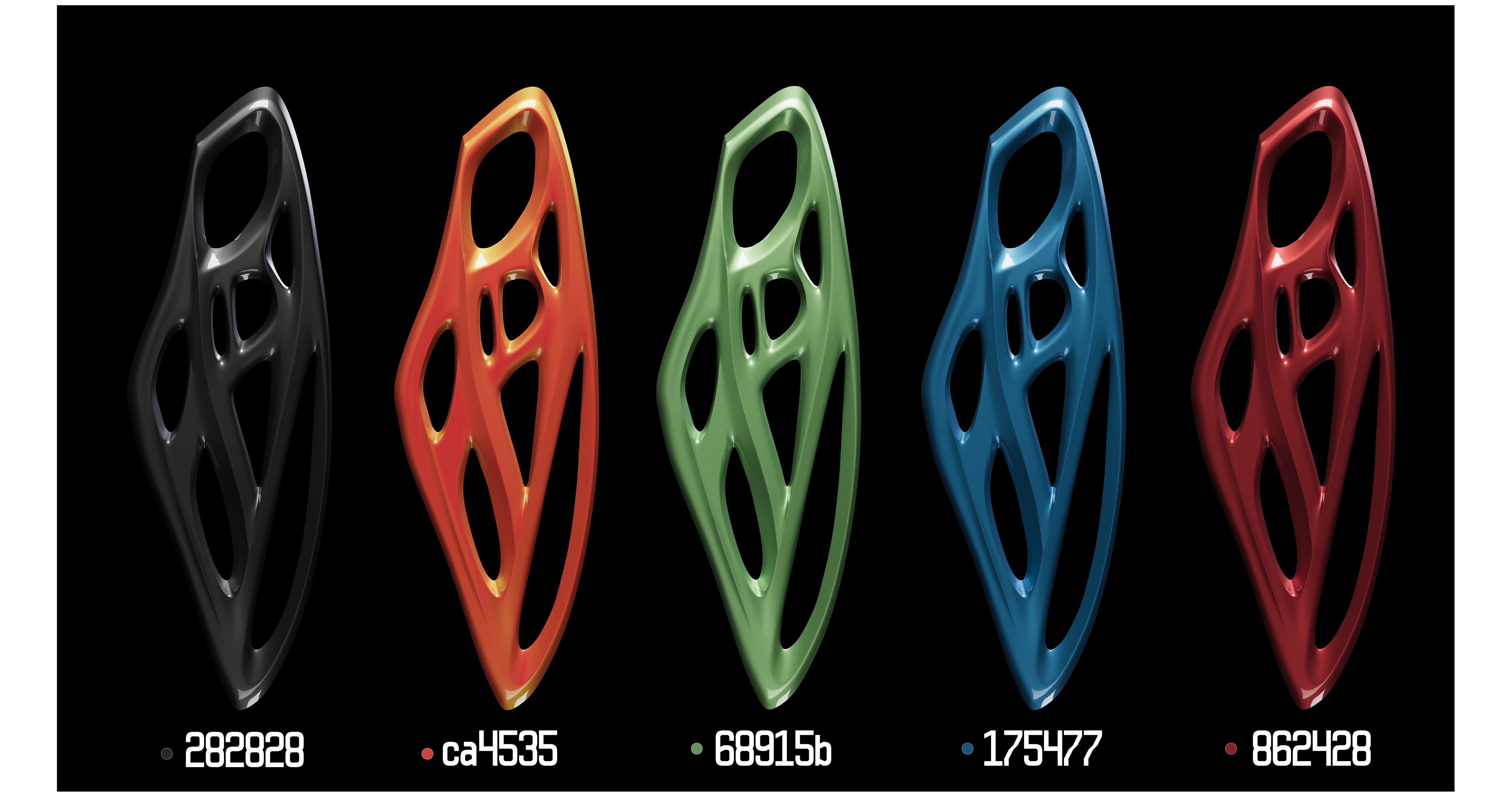 Material and finish explorations — testing the form in multiple surfaces and colors.