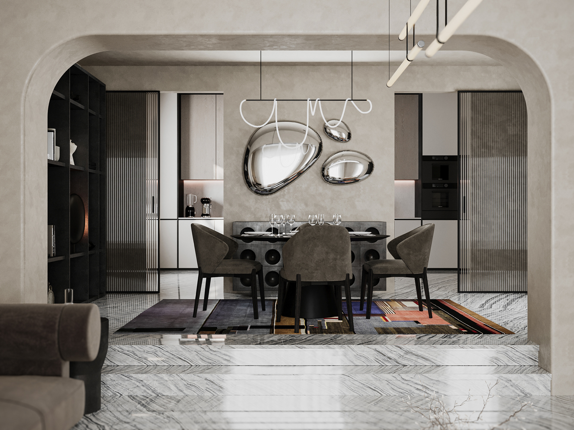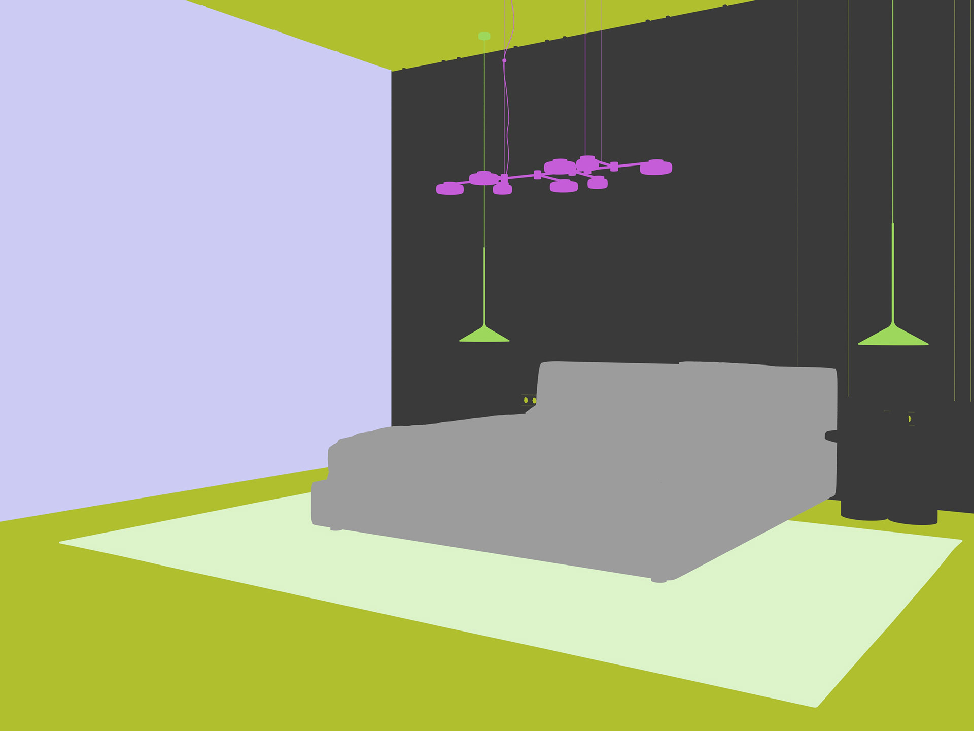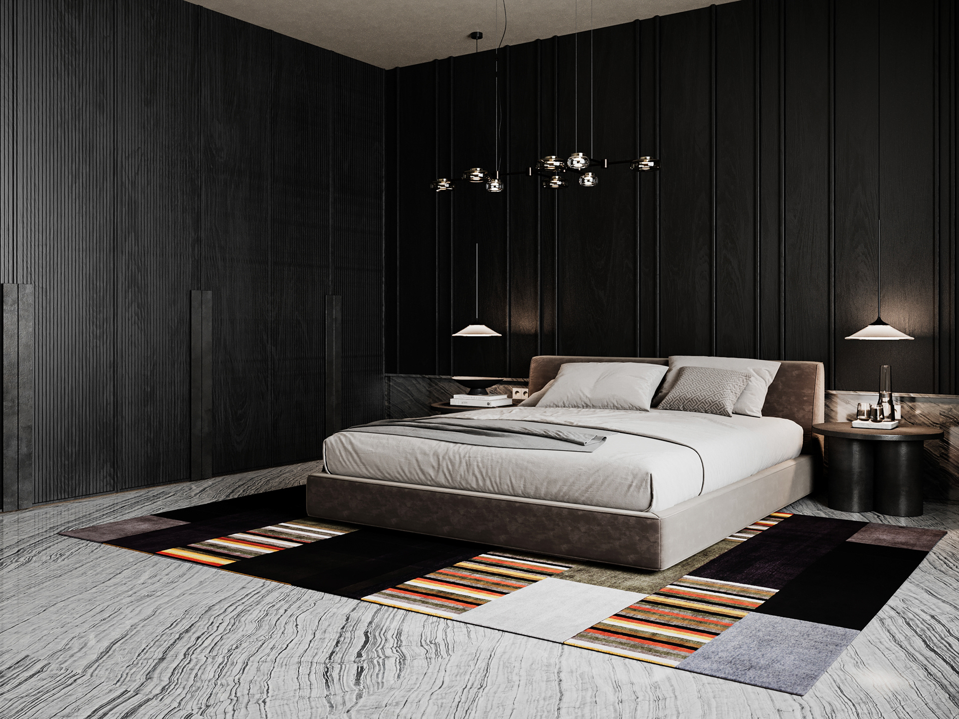 As part of the workflow, mask outputs from the 3D software were generated to isolate the rugs as independent elements. This allowed quick replacement or overlay of new rug designs in Photoshop, while keeping the rest of the scene intact and untouched.