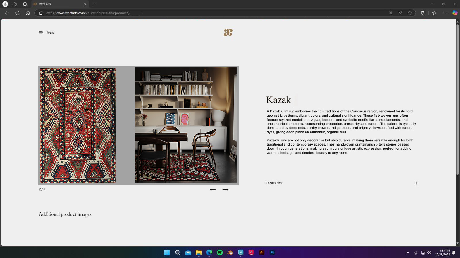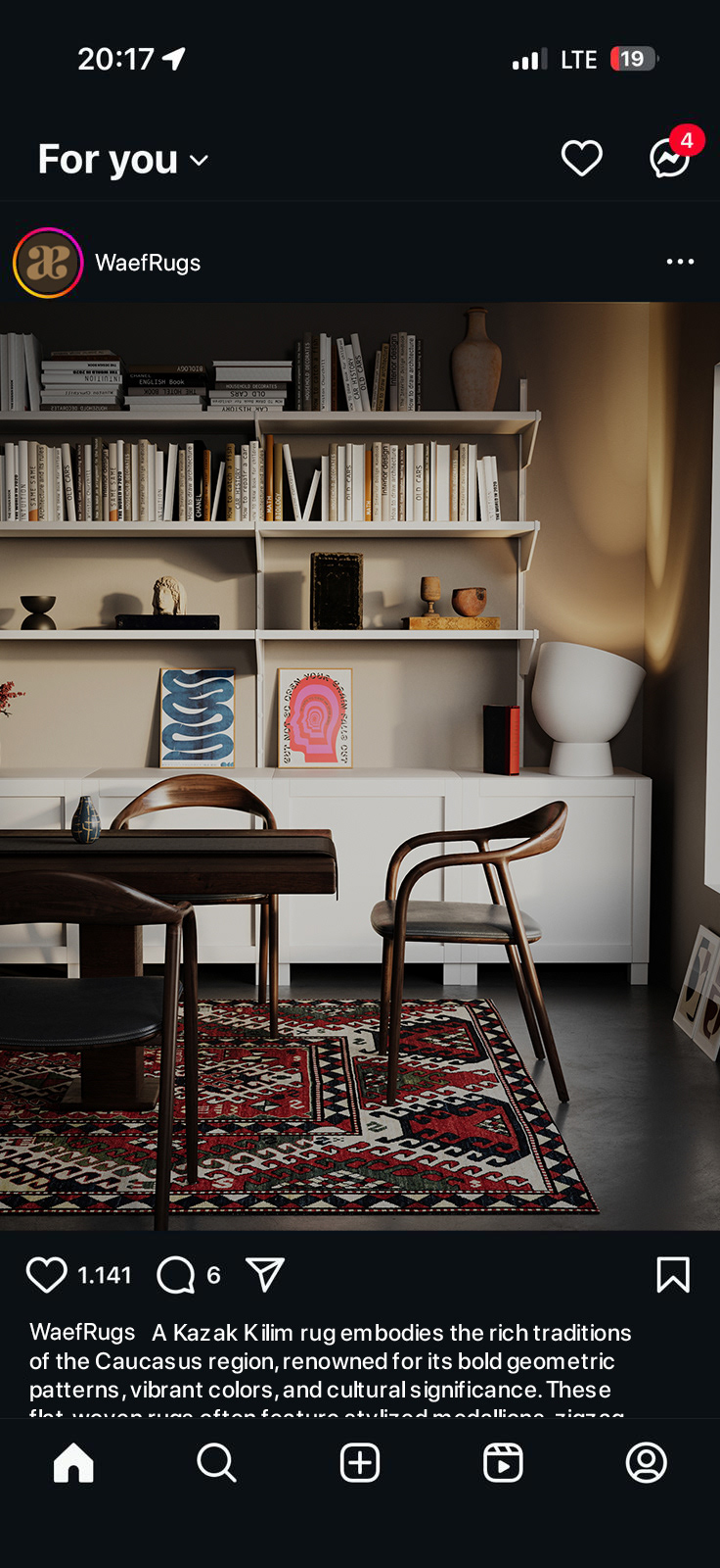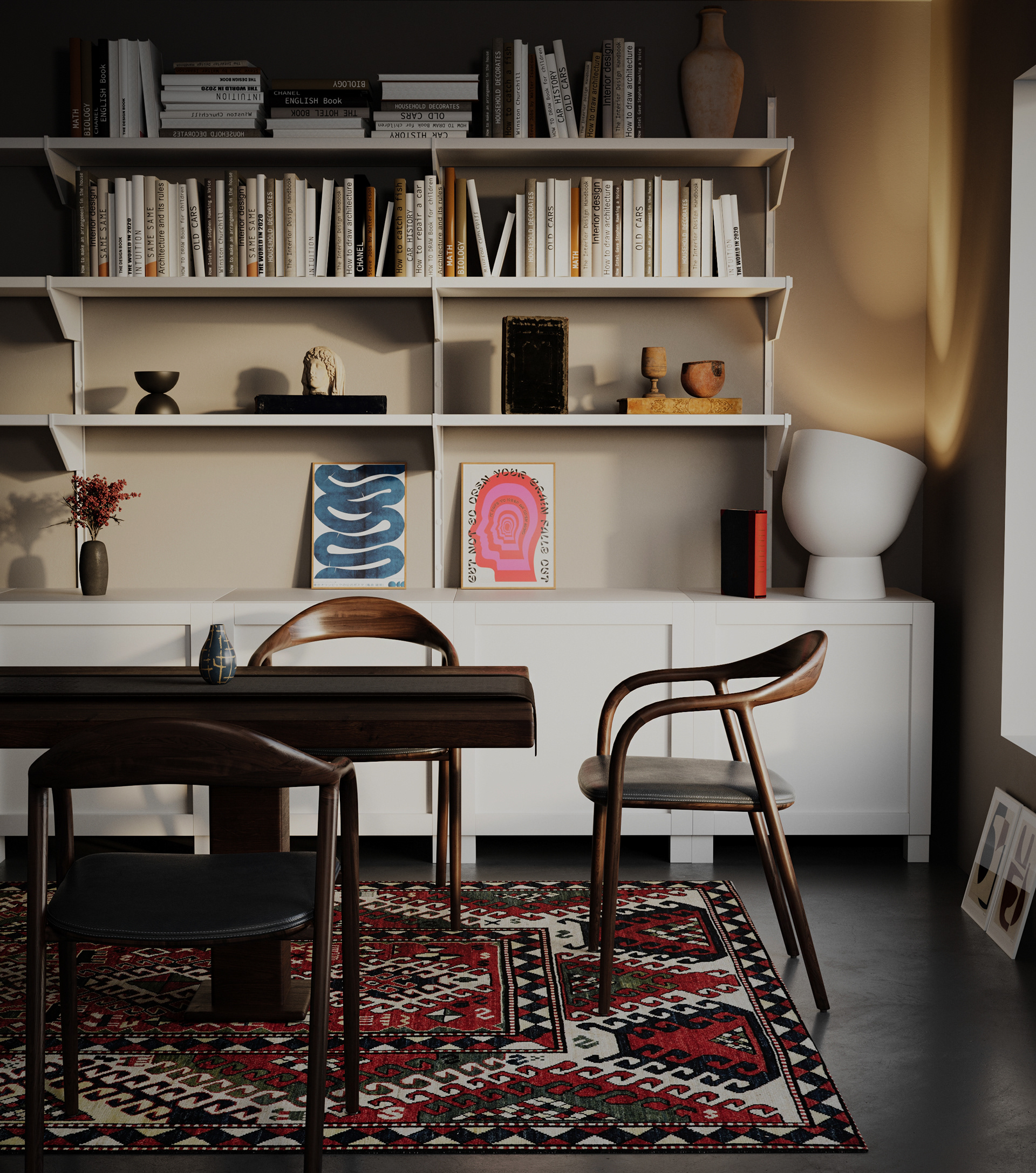 Waef Rugs requested digital visualizations of their Kazak Kilim collection in modern 3D interior settings. The goal was to create photorealistic assets that highlight the cultural richness of their products while making them more accessible for global online platforms.